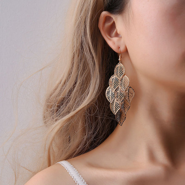 Vintage Leaf Drop Earrings, Women's Jewelry